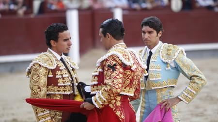 Otro cartel de campanillas, otro «No hay billetes» y otro desastre ganadero. Vuelve Manzanares, después del gran éxito del año pasado; vuelve Cayetano, después de cinco años; confirma alternativa el peruano Joaquín Galdós. Asiste Don Juan Carlos , al que brindan los tres ... espadas. La corrida de Juan Pedro no se lidia completa sino remendada por un toro de Juan Manuel Criado. No es buen comienzo. Lo peor viene luego: la desesperante flojera y sosería de los toros impide cualquier lucimiento, cualquier emoción.