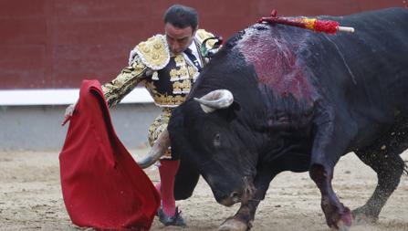 Una vez más, Ponce marca diferencias . El segundo sale suelto, huído. Enrique lo recoge, rodilla en tierra, y traza verónicas que acaban en la boca de riego. Lo lleva prendido en la muleta, desmayando la figura, jugando sólo la muñeca, con un sutil giro de cadera. Dos cambios de mano extraordinarios y la preparación para matar, con bellísimos ayudados, ponen al público en pie. Mata a la segunda y se queda en un trofeo: la faena, admirable, era de dos. El cuarto, bonito de capa, muy veleto, puntea, pega tornillazos, echa la cara arriba, se queda corto. Con paciencia y sabiduría, le va sacando todo lo que el toro pueda tener; por dos veces, logra el pase de pecho a la tercera, después de que el toro se le pare por completo . Corriendo la mano magistralmente, el derechazo se convierte en circular. El abaniqueo final, a lo Antonio Bienvenida, vuelve a poner al público de pie. Mata regular, a la segunda: el único lunar. La mayoría de pañuelos consigue el trofeo, que algunos protestan. Pero el saludo en el centro del ruedo y la salida en hombros son clamorosas: la cumbre de un maestro en plenitud.