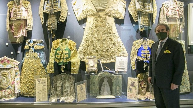 Jesús BayortEl hermano mayor de La Macarena, José Antonio Fernández Cabrero, junto a la vitrina taurina que expone el museo Rocío Ruz