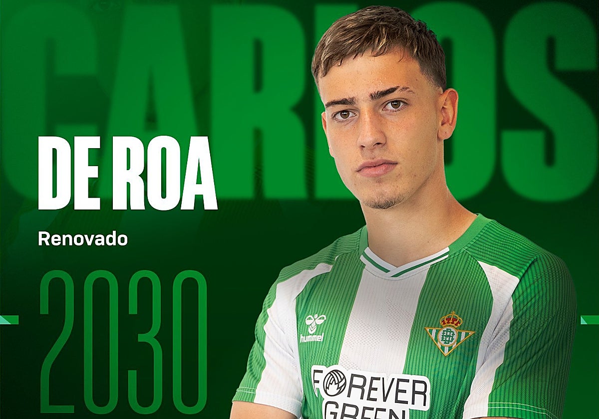 El Real Betis continúa reforzando los pilares de la entidad con una nueva renovación en la cantera. En esta ocasión ha sido el turno del defensa central Carlos de Roa que ha firmado hasta 2030. El futbolista de Dos Hermanas, que afronta su ... último año en edad juvenil, buscará realizar una gran temporada para dar el salto al filial verdiblanco.