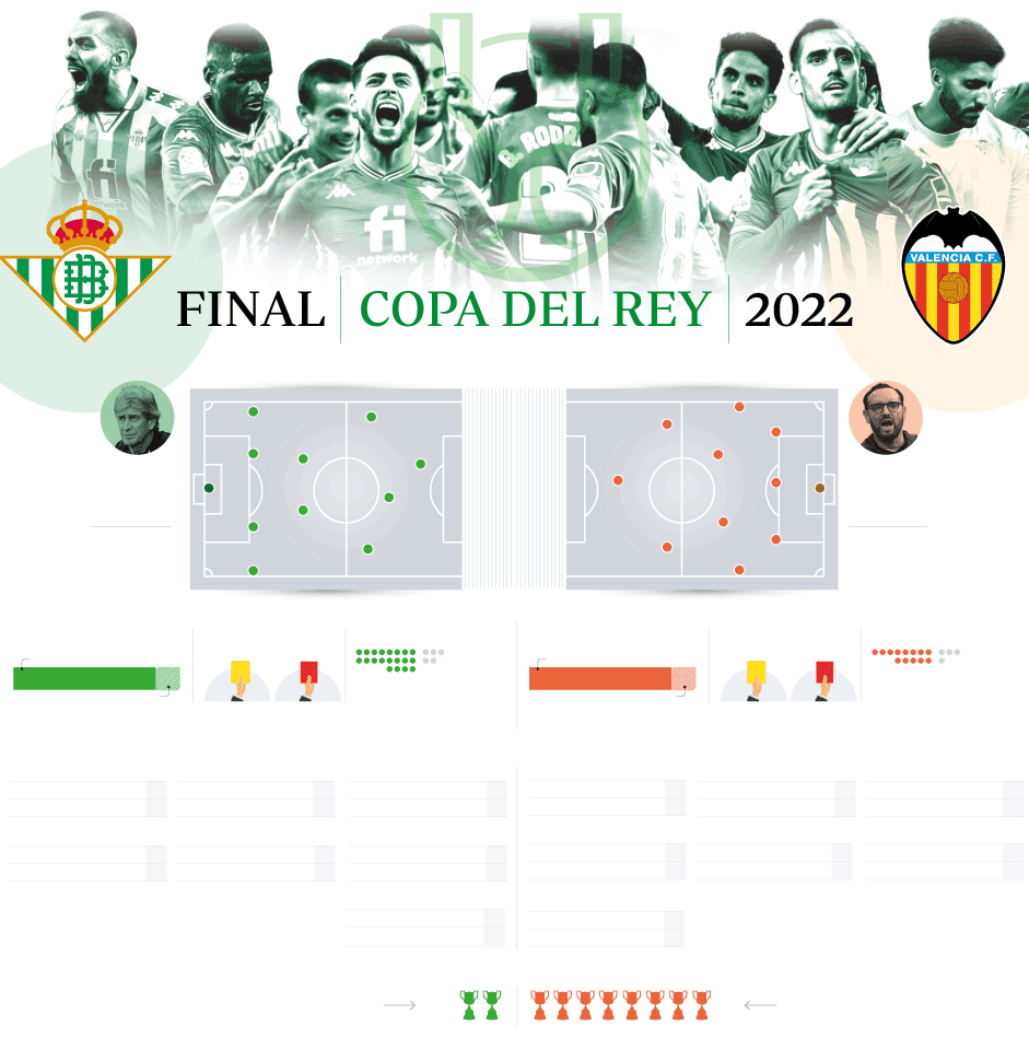 Diecisiete años después, el Betis abre su libro de grandes gestas para desafiar al Valencia en la final de Copa en la Cartuja; Pellegrini apostará por su once de gala