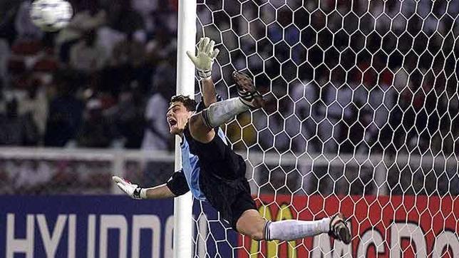 En su libro, «La humildad de un campeón» lo describe a la perfección Casillas: «Se jugó en Nigeria. Cuartos de final. Era el lanzamiento 16. Me lo tiran a mi derecha y lo intuyo. La anécdota es que en España se cortó la señal del partido en ese momento y no se vio por televisión. Sólo quedó la voz del narrador, Paco Grande».