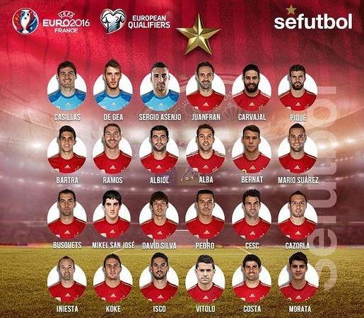 Junto al regreso de Andrés Iniesta, Del Bosque debe decidir qué jugadores mantiene de la última llamada, en los partidos contra Bielorrusia y Alemania, cuando se estrenaron con la Roja Ignacio Camacho (Málaga), José Callejón (Nápoles), Álvaro Morata (Juventus) y Manuel Agudo "Nolito" (Celta de Vigo).