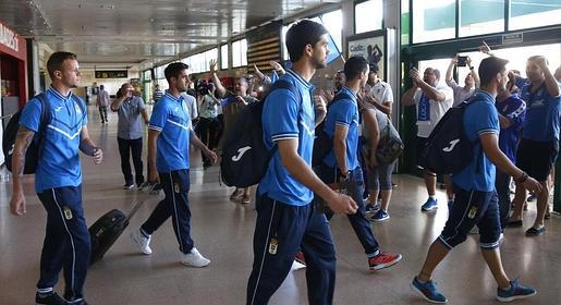 La expedición del Oviedo aterrizó ayer en el aeropuerto de Jerez de la Frontera, donde quedó concentrado. El cuerpo técnico y los jugadores esperan en su hotel la hora de salida hacia el estadio Ramón de Carranza. A su llegada a Jerez, el Oviedo fue recibido en el aeropuerto por numerosos hinchas azules.