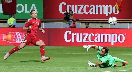 Un minuto le ha durado la alegría a Costa Rica. Buen desmarque de Alcácer, que evitó el fuera de juego y se plantó solo delante de Keylor. No falló en el remate el delantero valencianista, que ajustó el disparo al palo.