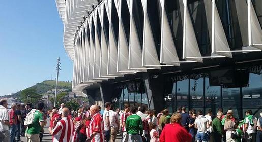 Ya hay muchos aficionados en los alrededores de San Mamés. Esta es la foto que publica el Athletic en su cuenta oficial de Twitter. Hace una tarde espléndida en Bilbao ¡¡¡