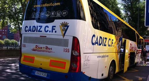 Los sueños de ascenso del Cádiz viajan en este autobús. Muchos kilómetros recorridos a lo largo de la temporada en este vehículo, presente hoy también en Bilbao. El equipo amarillo está a 180 minutos del ascenso.