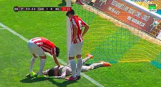 Amarilla para Lekue por pérdida de tiempo. SE prepara Airam para entrar en el Cádiz.