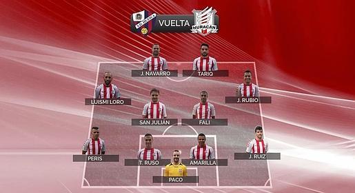 Así presenta el Huracán su alineación en su cuenta oficial de Twitter.
