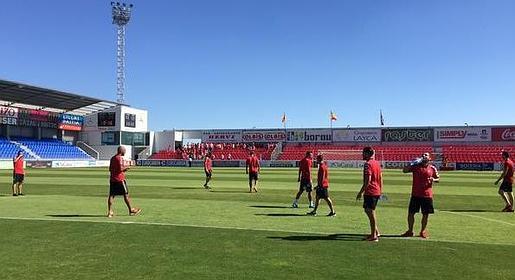 Queda poco más de hora y media y los jugadores del Huracán ya están en el estadio Alcoraz. El club valenciano acaba de publicar esta imagen de la expedición inspeccionando el estado de la hierba (vía @huracanvalencia)