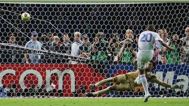 La final del Mundial 2006 se resolvió en la tanda de penaltis después de que Francia e Italia empatasen a uno. David Trezeguet fue el elegido para el disparo decisivo. El delantero francés quiso hacer una exquisitez, y a punto estuvo. Colocó el lanzamiento elevado y ajustado a la escuadra, imparable para Buffon. Pero el esférico rebotó contra el interior de larguero, cayó en picado y se estrelló justo ante la línea de gol. Italia ganó el Mundial, literalmente, por milímetros.