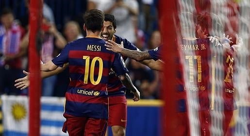 El Barcelona se lleva los tres puntos del Vicente Calderón gracias a un genial Leo Messi , que revolucionó el encuentro desde el momento qu saltó al terreno de juego desde el banquillo. El Atleti se habñia adelantado en el marcador gracias a un gol de Torres, pero un genial lanzamiento de falta de Neymar puso las tablas en el marcador hasta que apareció Messi para llevarse el encuentro con su gol
