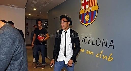 Neymar ha vuelto a llegar al Camp Nou con un espectacular «look». Esta es la imagen que publica el Barcelona en su cuenta oficial de Twitter (@FCBarcelona_es)