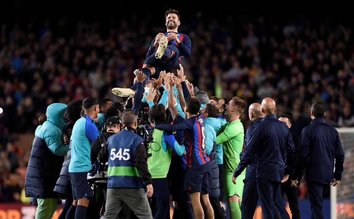 Se le veía nervioso en el túnel de vestuarios, tratando de relajarse besando a sus dos hijos, que saltaron junto al futbolista para retratarse con él en el último partido en casa, en el feudo que le ha idolatrado durante 15 temporadas. Equipo arbitral y rivales le abrazaban mientras el público coreaba su nombre. No parecía que hubiera tres puntos en juego. Lo ejemplificó la petición del público cuando González Fuertes pitó penalti superados los cinco minutos. Solicitó el respetable que lo lanzara Piqué y rubricara su despedida con un gol. Imperó la lógica y la prioridad deportiva. Lewandowski se lo ofreció pero el central ni se lo planteó. «Lo tiras tú», le dijo señalándole con el dedo. El polaco agarró el balón y lo pateó, aunque fuera.