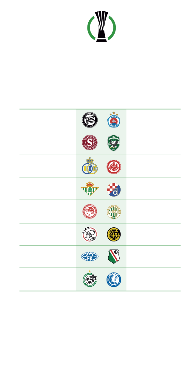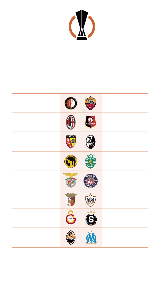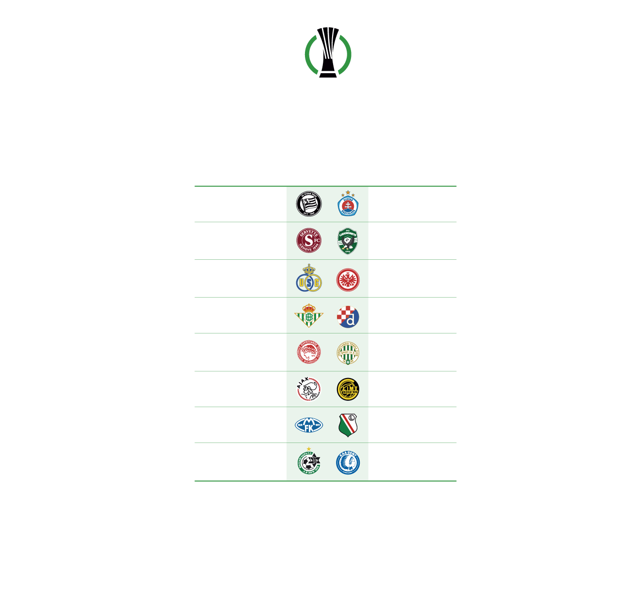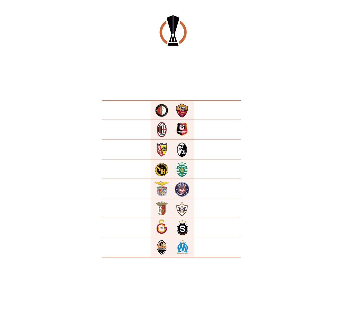Pasan a octavos directamente: Aston Villa, Brujas, Fenerbahçe, Fiorentina, Lille, Maccabi Tel Aviv, PAOK y Viktoria Pilsen
