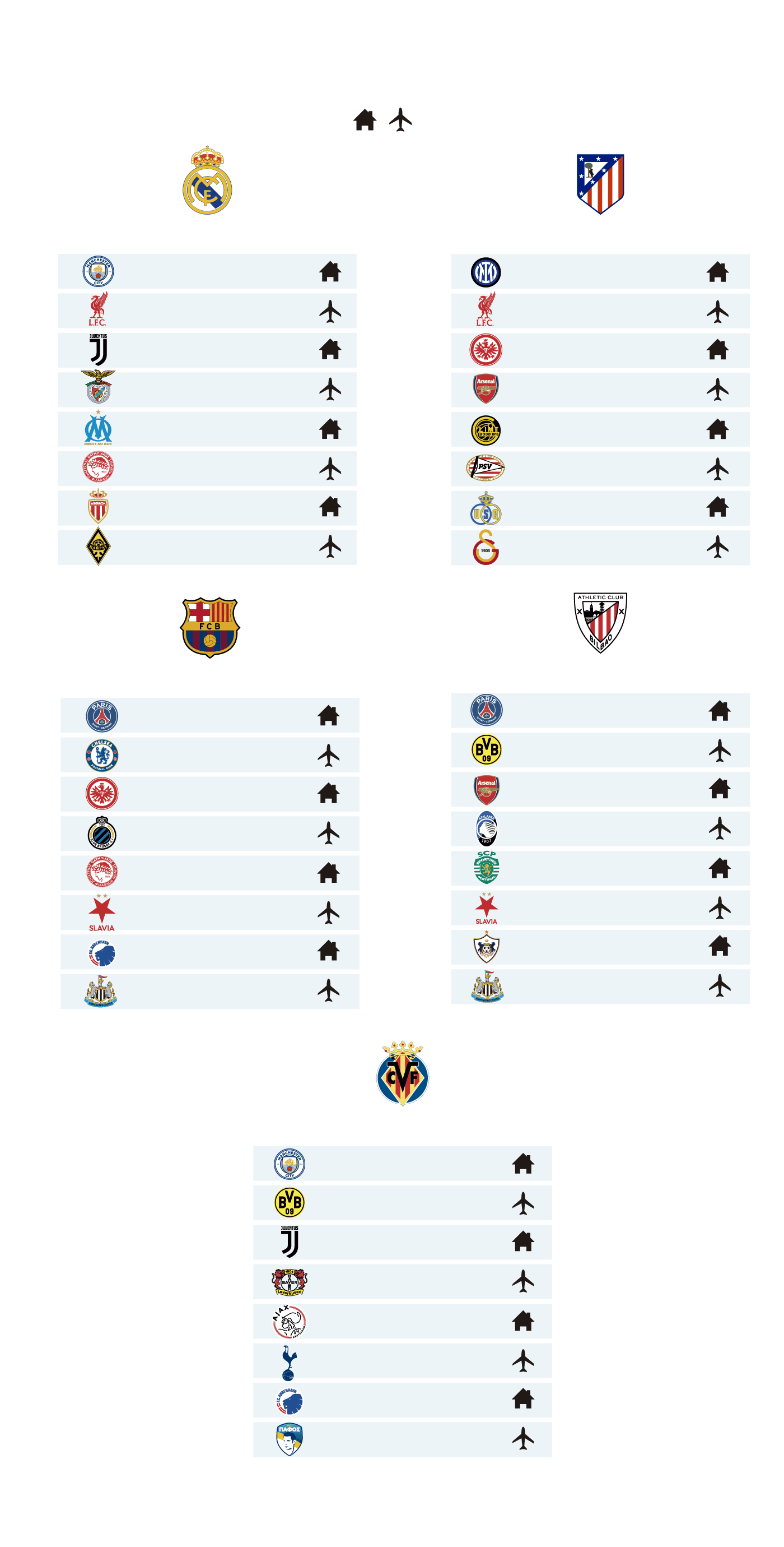 Los equipos españoles ya conocen sus ocho rivales en la fase de grupos, y los de Xabi Alonso son los que peor suerte tuvieron con el software: City, Juventus, Liverpool, Mónaco, Kairat en Almaty...