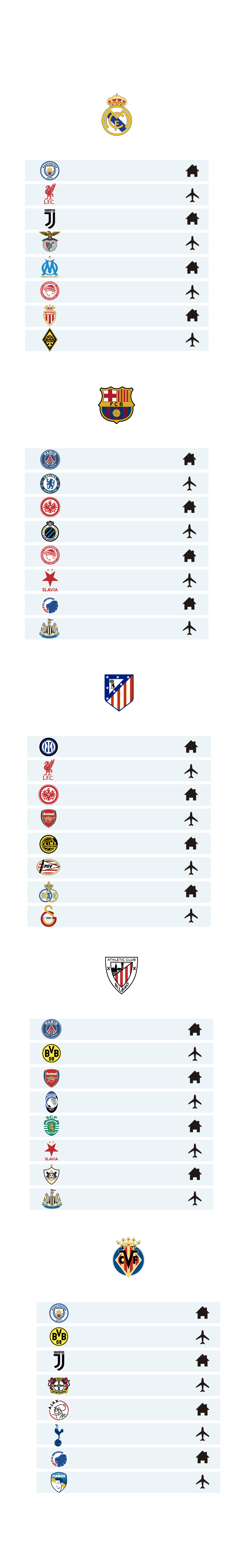 Rivales de los equipos españoles en la fase de