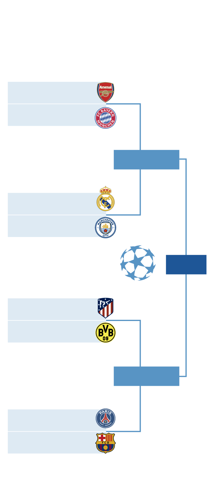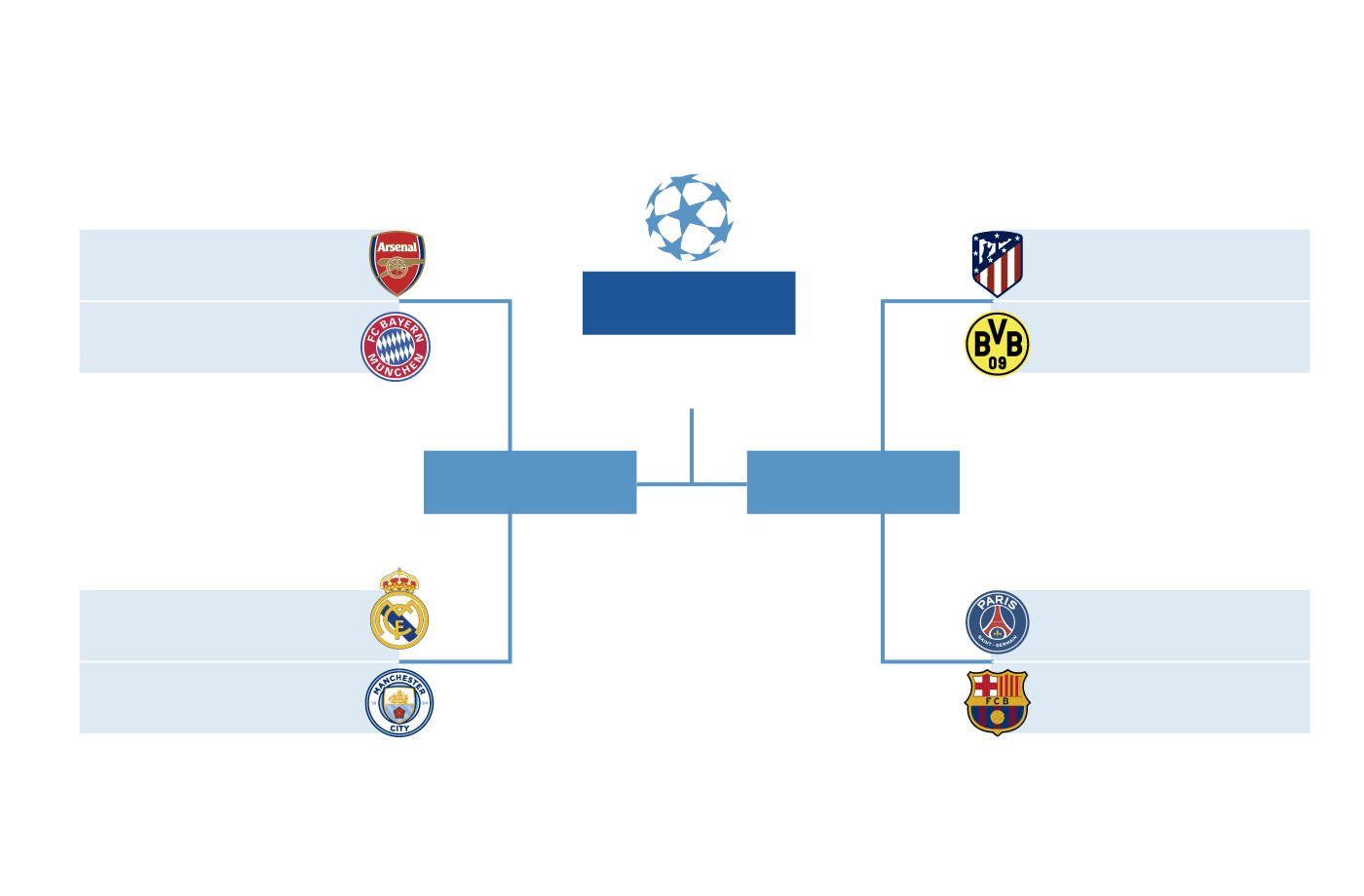 Las semifinales también han quedado ya sorteadas. El ganador de la eliminatoria Arsenal-Bayern se medirá al vencedor del Real Madrid-City, mientras el ganador del Atlético-Borussia jugará contra el que salga adelante del PSG-Barcelona.
