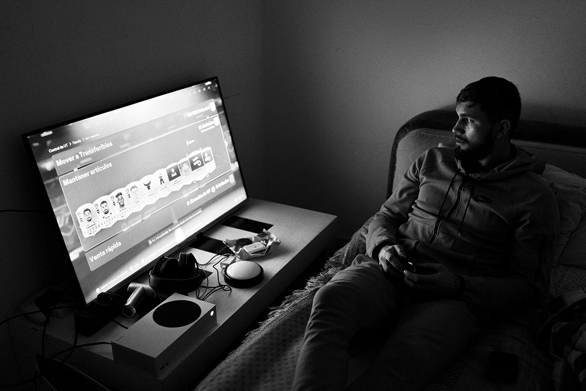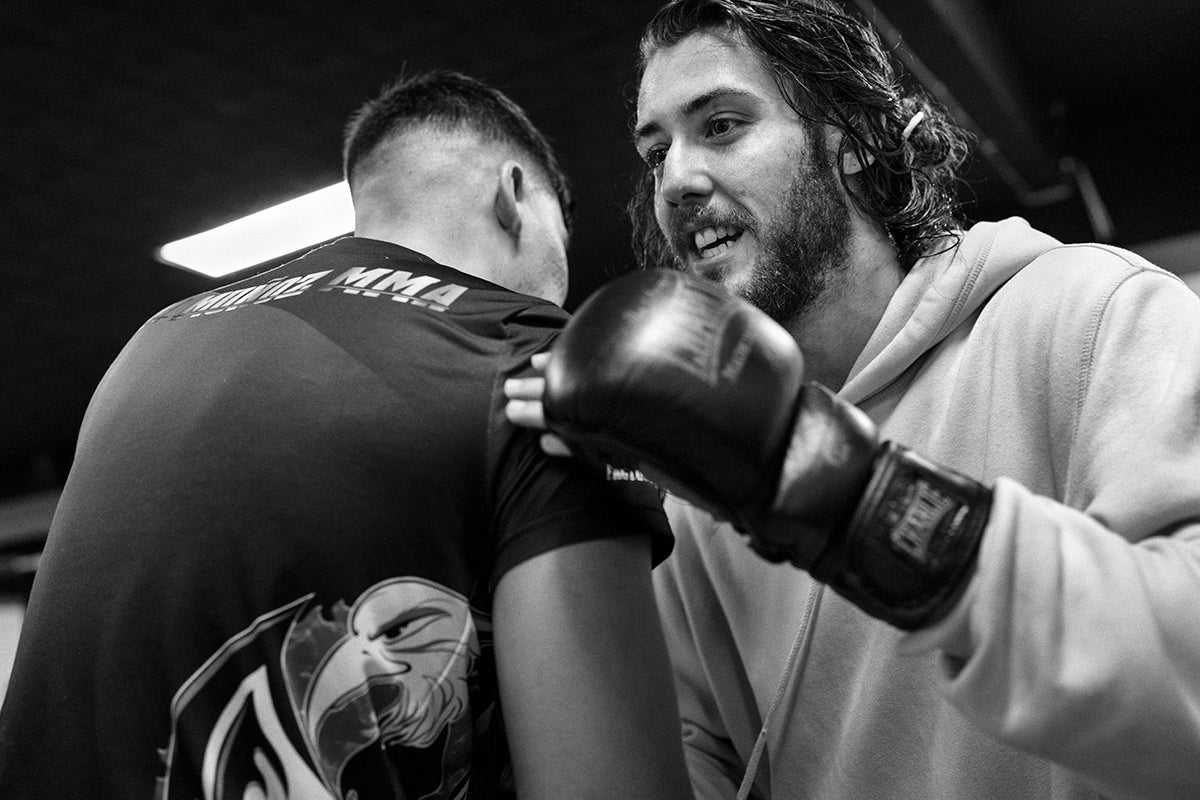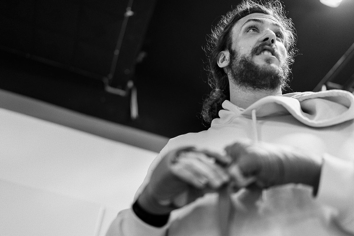 Alberto se prepara bajo la guía de David Muñoz en el gimnasio Factory of Fighters. Entrena con disciplina casi obsesiva, ajustando su técnica como si depurara un programa, revisando cada movimiento hasta que no queda un solo error. Más tarde, mientras echa unas partidas en casa, trata de ajustar su táctica.