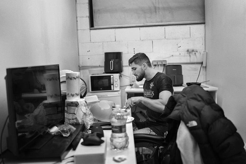 En el gimnasio The Black Panther en Carabanchel, su presencia es un contraste: entrena como un depredador. No quiere perder el tiempo, por eso durante el 'training camp' abandona su Alcalá de Henares natal para dormir en un colchón en la buhardilla del club. Entrenar, comer, dormir y repetir. La rutina es monástica.