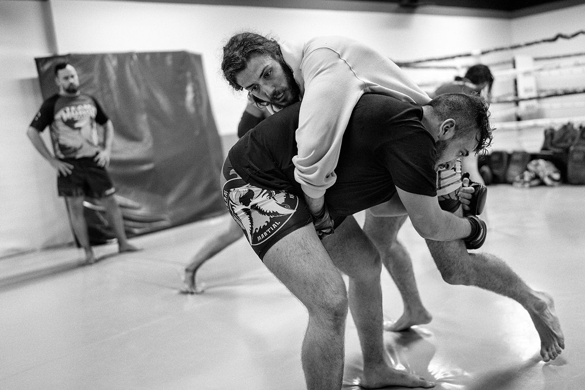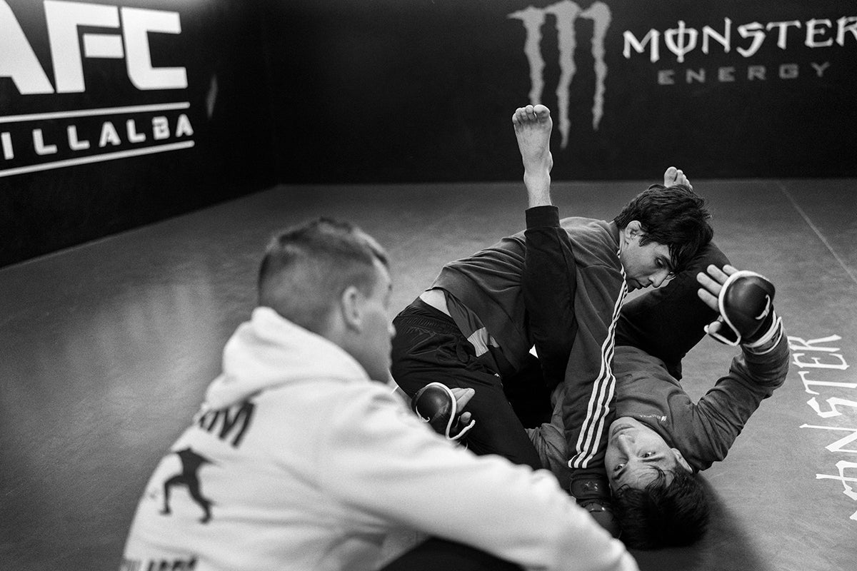 Cuando concluye su doble sesión, es hora de regresar al pueblo, del que, bromea, es una suerte de Daguestán madrileño, pues cuenta con varios competidores de MMA pese a su escasa población, todos ellos grandes talentos. «Los sitios pequeños crean gente con una personalidad muy fuerte».