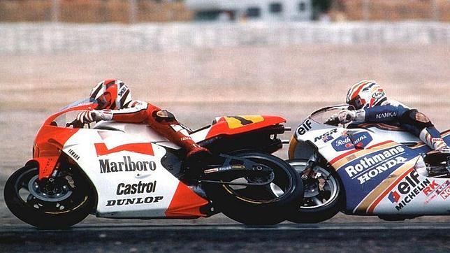 También en 1989 Wayne Rainey disputó a muerte el mundial en la última carrera contra su compatriota Eddie Lawson. Fue Rainey el que lideró la clasificación durante buena parte de la temporada, pero una caída en Suecia le puso en bandeja el título a Lawson. En una duelo fantástico en Brasil Lawson pudo más y terminó segundo, por delante de Rainey, para coronarse rey de 500cc.