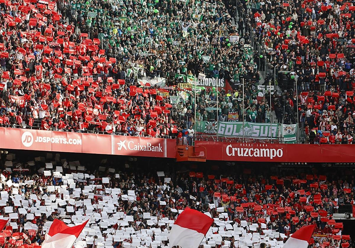 Ya con el encuentro en juego, la animosidad no paró. Tanto por parte de los sevillistas que intentaron llevar en volandas a su equipo en pos de la victoria, como por los 600 béticos que se dejaron las gargantas para que se les escuchara como si fueran la afición local. Los nervionenses se fueron apagando viendo cómo Fornals y Altimira marcaban en la segunda parte los goles que le daban la victoria al Betis, lo que provocó que los verdiblancos aumentaran, no sólo por la celebración de ambos goles, el ánimo y los cánticos.