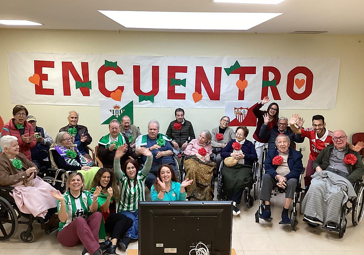 En el centro Fundomar de Los Bermejales, residencia de mayores de la Fundación Doña María, los béticos «Aurelianos» y los sevillistas «José Arcadios» viven un derbi digno de un antagonismo centenario