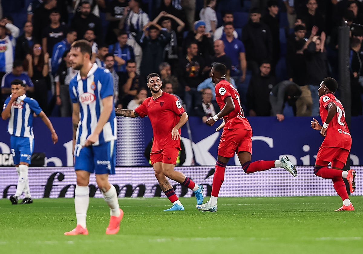 La duda de la noche era quién iba a sustituir al querido Ejuke. Pimienta apostó por premiar a Idumbo Muzambo. Una difícil prueba para el belga de 19 años, aunque su velocidad y desparpajo dejó buenas sensaciones sobre el tapete. El jugador fue clave para las transiciones del Sevilla, que, aunque jugó más a sobar el balón, elegía bien los momentos para arrancar en velocidad y plantarse en el área de Joan García. Pero si hay alguien que brilló con luz propia en el RCDE Stadium fue su compatriota Lukebakio. El extremo destacó por encima de todos los demás con su calidad y pegada. Con estos dos goles, el máximo anotador del Sevilla eleva a cinco su recuento personal.