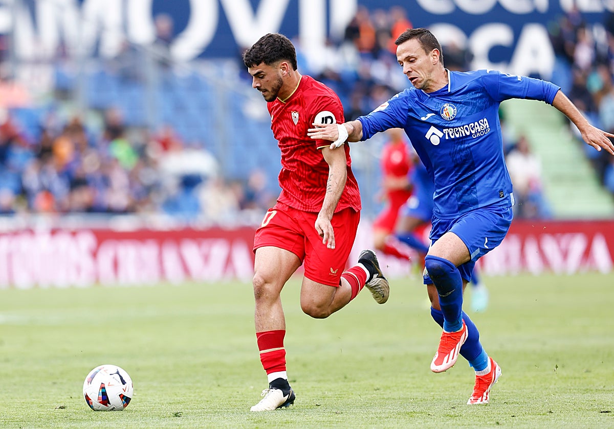 Min. 33 (0-1): Minutos de peligro por parte del Getafe, que pudo aprovechar varias imprecisiones defensivas del Sevilla