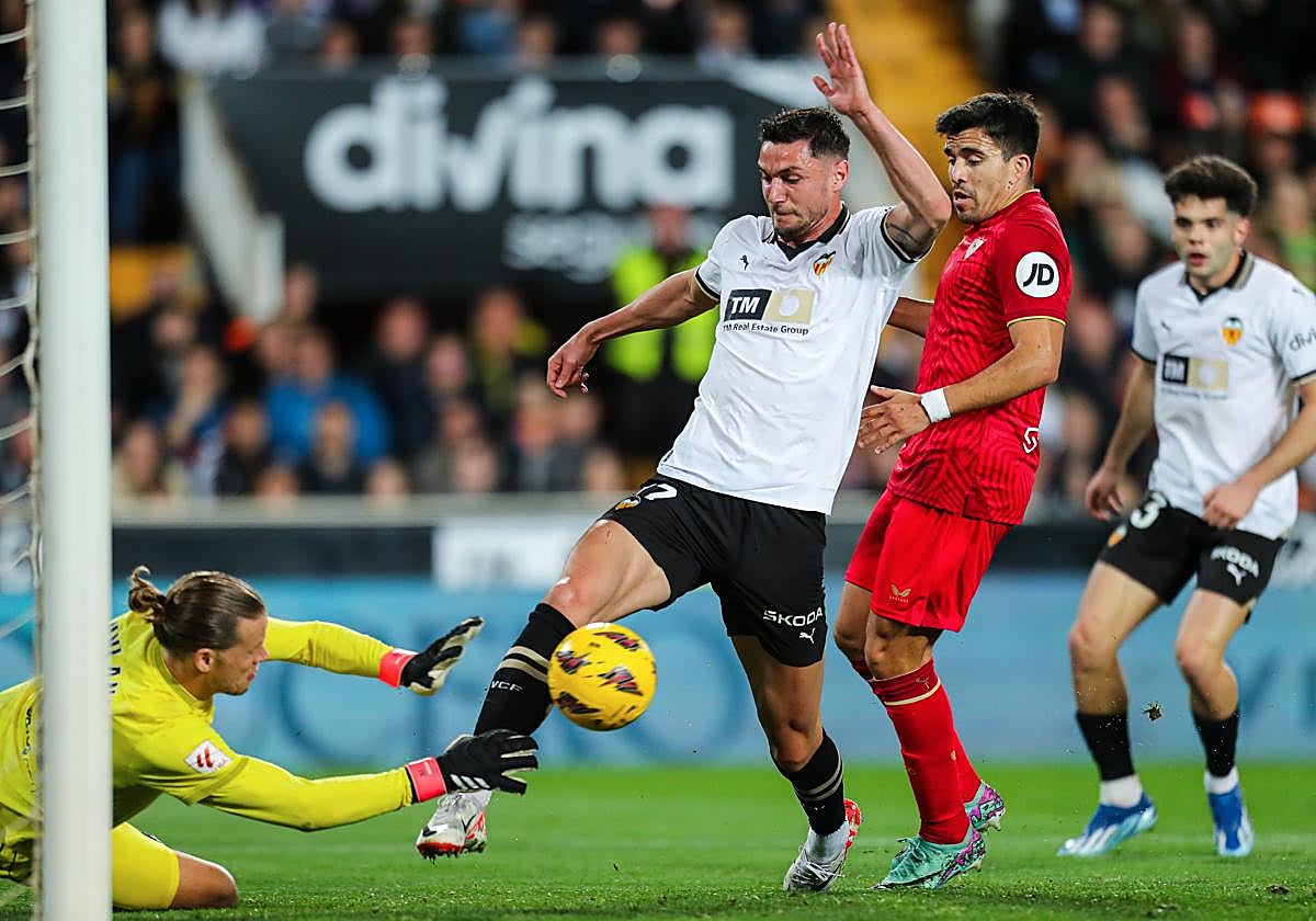 Iniciar sesiónEl Sevilla FC tenía este sábado la oportunidad de oro para seguir ganándole metros a la zona del descenso tras las derrotas de Cádiz y Celta. Una victoria en Mestalla, además de deportiva, también hubiera sido un bálsamo moral, teniendo en cuenta la tensas ... relaciones entre ambos clubes desde este pasado mercado de invierno. No obstante, el cuadro nervionense se topó con un partido rocoso y exigente en un territorio muy hostil. El reparto de puntos le supo mucho mejor al Sevilla, que centró prácticamente todos sus esfuerzos a desactivar las llegadas de peligro del rival y casi no generó peligro en el área de Mamardashvili. El cuadro blanquirrojo mostró muchas dificultades a la hora de conectar con Isaac y En-Nesyri, que no pudieron darle continuidad a su buena racha. Aun así, el devenir de la jornada y la victoria inesperada ante el Atlético hacen bueno el punto.