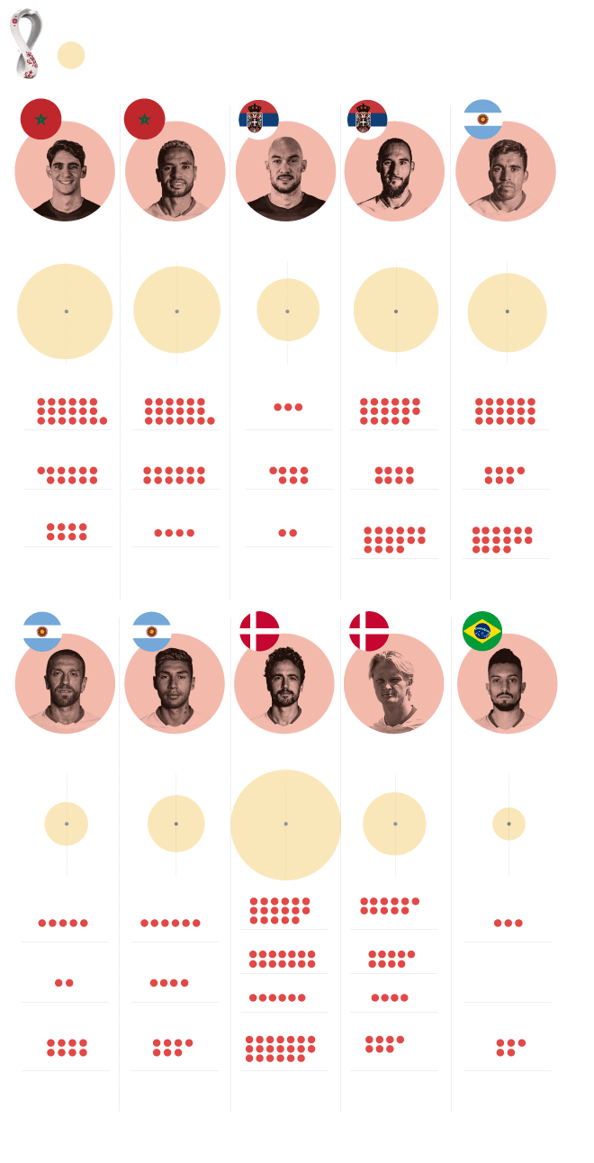 Todos los datos de rendimiento de los diez jugadores del conjunto de Nervión que disputarán la Copa del Mundo