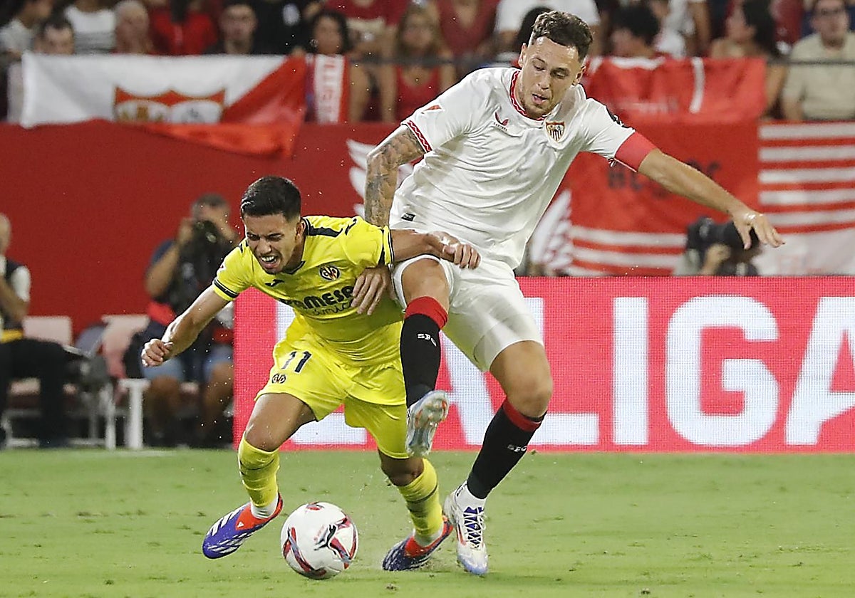 El conjunto sevillista saldó la primera jornada del Campeonato con un punto de sabor agridulce. Es verdad que mostró frescura y variantes en ataque, pero también fragilidad defensiva y poca consistencia en un centro del campo desprovisto de los recursos de Saúl, Lokonga o Suso, que sigue lesionado de la rodilla derecha y se pierde también esta cita ante el Villarreal. Sigue activo el Sevilla en la ventana de transferencias y por ahora ha cerrado la cesión por una temporada del lateral zurdo argentino Valentín Barco, cuyos derechos pertenecen al Brighton.