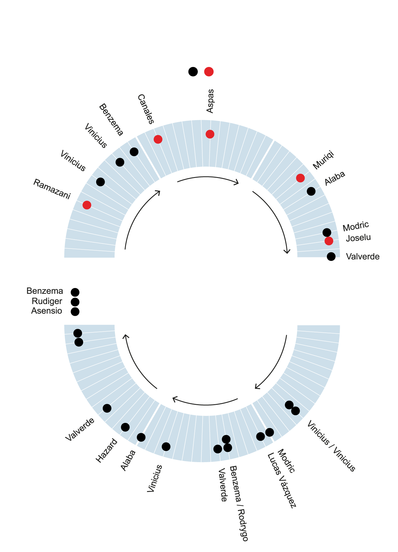 La pasada temporada ya puso en marcha este cambio con la irrupción y el protagonismo de futbolistas modernos como Camavinga, Valverde, Vinicius, Rodrygo, Militao o Alaba, y esta temporada se han sumado a ellos Tchouaméni y Rudiger. Músculo con ingenio que está siendo clave en este espectacular inicio de temporada de los blancos donde suman ocho victorias en ocho partidos (cinco en Liga, dos de Champions y la Supercopa de Europa) con un patrón sorprendente. De estos ocho encuentros ha ganado seis en las segundas partes, pero no solo es el hecho de haberlos ganado en ese tramo en el que los acontecimientos del partido son practicamente definitivos para el resultado del mismo, es el cómo. El Madrid tiene un parcial de seis goles a favor y cinco en contra en las primeras partes, y un dieciséis a cero en las segundas: «Es el fútbol 3.0 que Ancelotti vio antes que nadie», resumen en el Madrid.