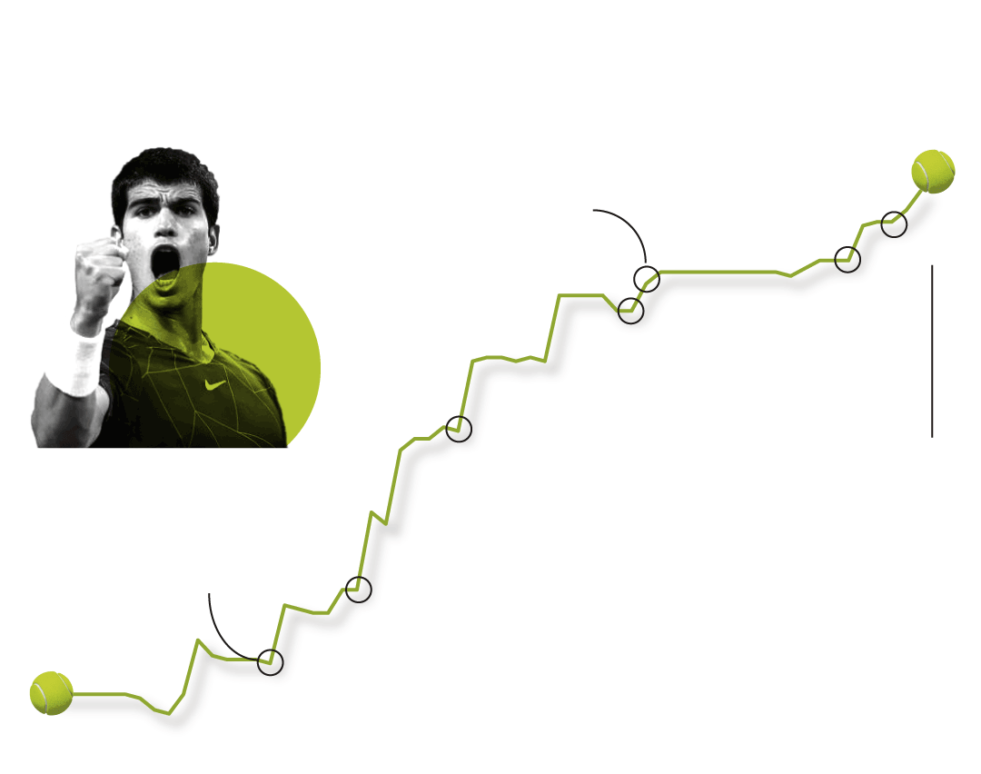 Fue, fiel al estilo de su entrenador, Juan Carlos Ferrero, dando un pasito cada vez. Pero a la velocidad de la luz. Cumplió 18 años en su partido contra Rafael Nadal en el Mutua Madrid Open. Su punto de despegue a pesar de que al balear no le tembló el pulso para dejarle claro que todavía tenía que crecer. Alcaraz tomó nota de ese recado, del 6-1 y 6-2 y se puso a trabajar.