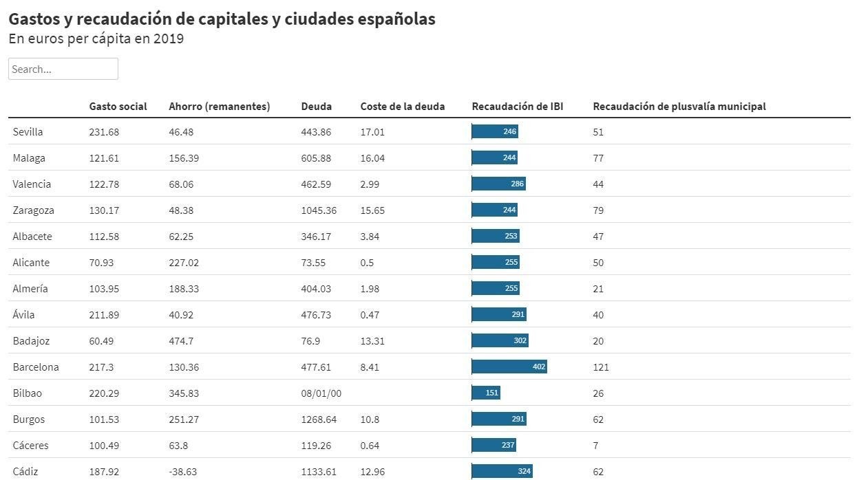 Busca los ayuntamientos que cobran más IBI, plusvalía local y que tienen más deuda por habitante