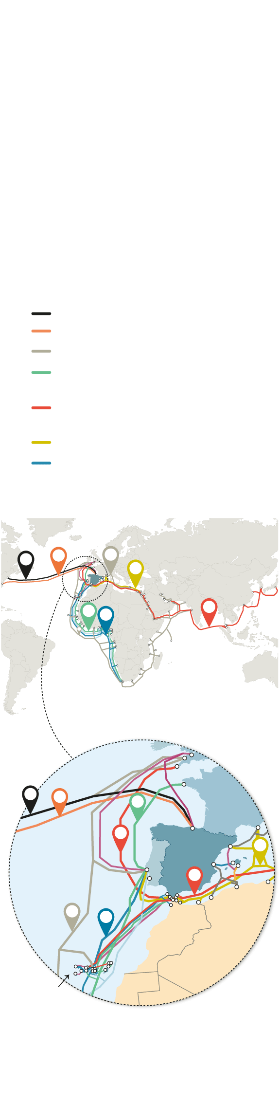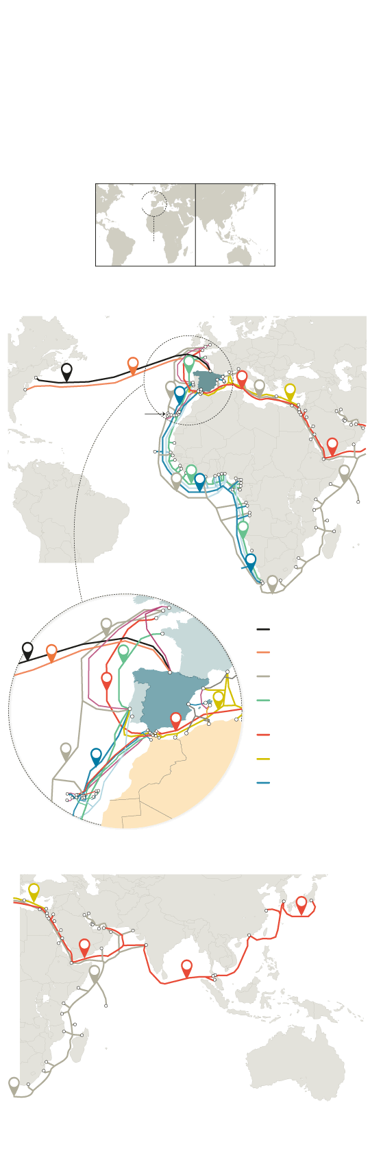 Iniciar sesiónSon las arterias de internet. 1,3 millones de kilómetros de fibra óptica resguardados en las profundidades de los mares y océanos que posibilitan el acceso a cualquier servicio online en apenas unos milisegundos. Los cables submarinos se han convertido en un ... activo crítico para el desarrollo de la sociedad digital de nuestros días, resiliente incluso a reveses como los meses de confinamiento en los que la red estuvo sometida a un estrés sin precedentes . El trabajo en remoto, la telemedicina, los contenidos en ‘streaming’ o las aplicaciones de realidad virtual salen adelante gracias a la existencia de estos tubos que pueblan el lecho marino y conectan continentes. Hay un dato revelador que da buena cuenta de su magnitud: hoy el 99% de las telecomunicaciones mundiales transcurre por estas infraestructuras –solo un raquítico 1% depende de los satélites–, por lo que contar con puntos de anclaje en territorio nacional es una cuestión estratégica para cualquier país.