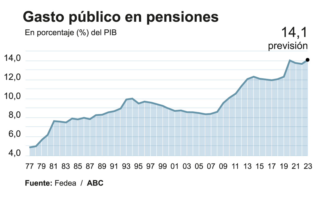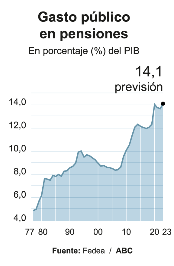 Según los cálculos de Fedea , volver a indexar las pensiones elevará el gasto en 188.500 millones el próximo año, lo que equivaldría al 14% del PIB , lo que supone 1,7 puntos por encima del nivel de 2019, cuando se encontraba en la media de los países de la zona euro. Los estudiosos del sistema esperan que las reformas paramétricas que incluyan en la segunda parte de la reforma contribuyan a atenuar estos gastos, así como las transferencias del Estado para cubrir los denominados gastos impropios.