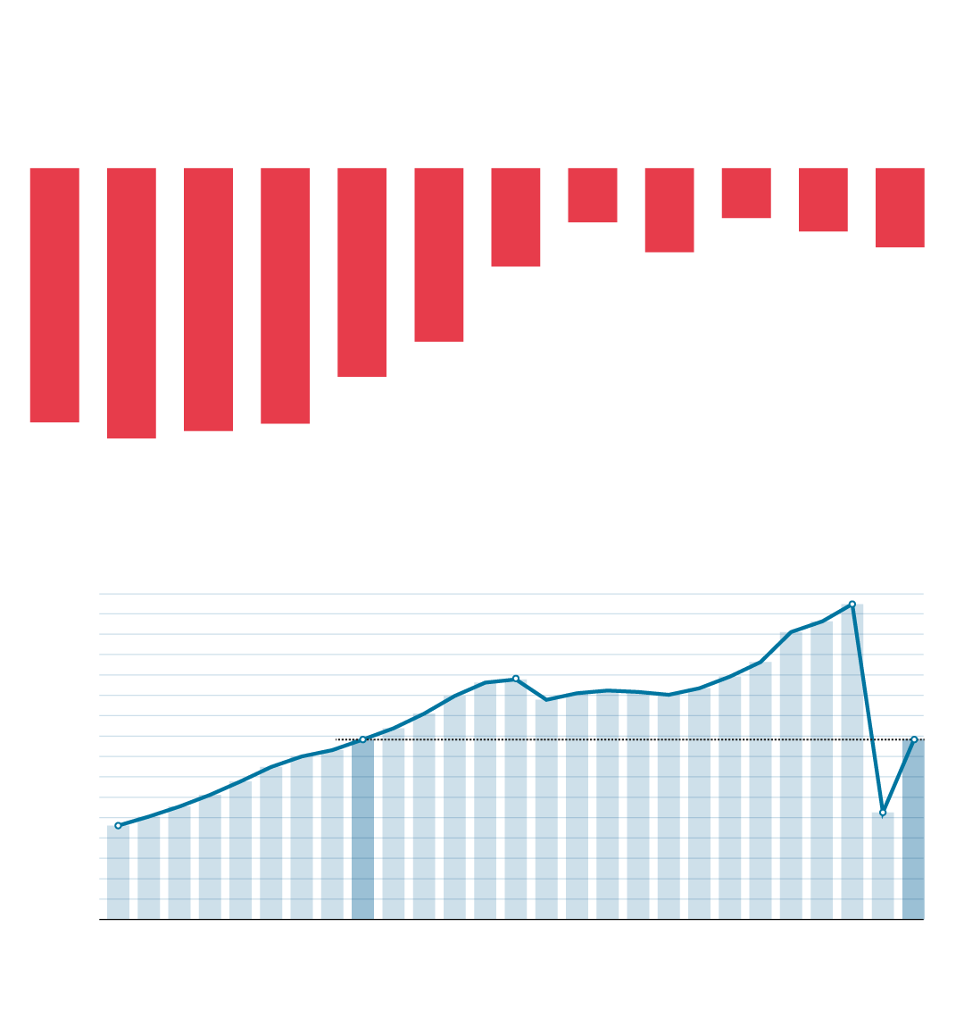 «La mayoría de las empresas han sufrido este último trimestre . Este parón provocó tensiones importantes en la tesorería. La preocupación de muchas es ver cómo sobrevivir», explicó ante los medios el vicepresidente de Exceltur, José Luis Zoreda, que añadió que «las compañías no pueden todavía repercutir en sus precios la subida de los costes». Para cuantificar el impacto que tuvo la sexta ola durante el cierre del año sirva como ejemplo que las ventas de las empresas retrocedieron diez puntos a partir de octubre. De esta manera, Exceltur calcula que el PIB del turismo cerró 2021 en los 88.546 millones de euros, un 42,8% aún por debajo de 2019. De confirmarse, serían cifras similares a las de 2003, mientras que la aportación al PIB nacional pasaría del 5,5% de 2020 al 7,4%.