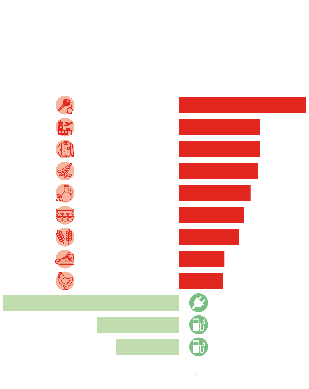 El encarecimiento de determinados componentes que se utilizan en la agricultura y los estrangulamientos en las cadenas de suministro han generado subidas mensuales muy fuertes en el aceite de oliva (10,9%), los huevos (9,9%) o la carne de ave (6,7%). Los paquetes turísticos nacionales e internacionales se encarecieron por encima del 10% al calor de las favorables expectativas de la próxima temporada turística y la noche de hotel subió casi un 20%, condicionada por la Semana Santa.
