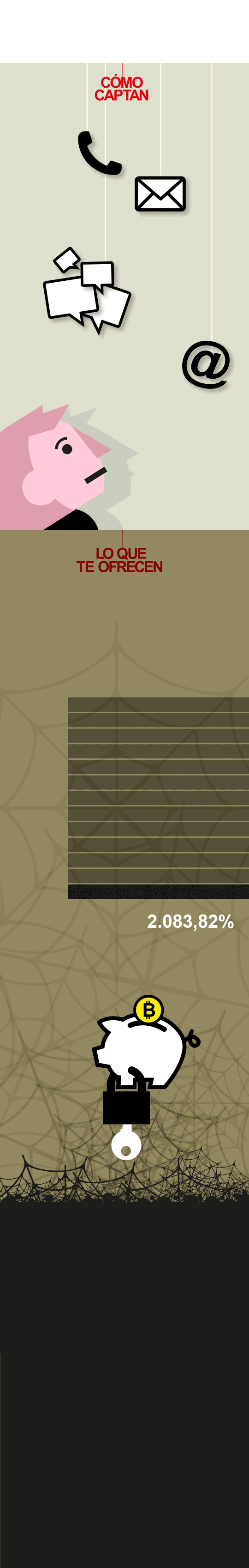 Son empresas, o intentan aparentar que son empresas, que se dedican en teoría a asesorar a pequeños ahorradores que no saben dónde poner su dinero. Han inundado internet y las redes sociales de anuncios sobre cuánto puede uno llegar a ganar. Venden seguridad, fiabilidad, rentabilidad garantizada. Todo mentiras. ABC se ha infiltrado como potencial cliente en varias de estas entidades para desentrañar su 'modus operandi' .