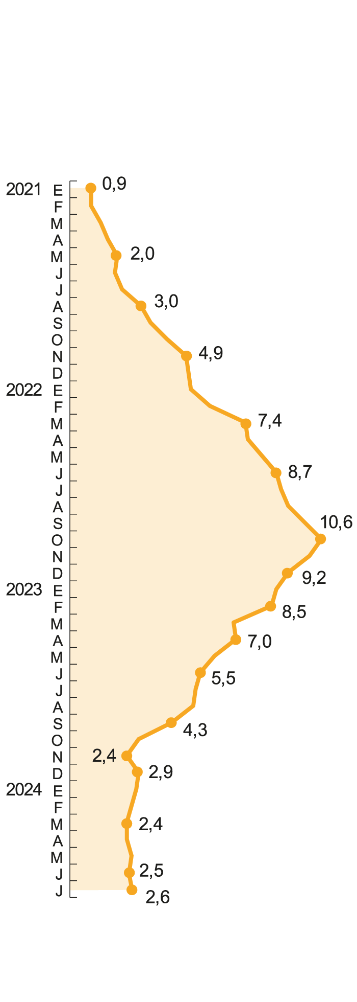 La presidenta del BCE, Christine Lagarde, ha dejado abierta la puerta a una decisión en septiembre, pero condicionada por la inflación persistentemente alta en el sector servicios y el fuerte crecimiento salarial. Y los datos no acompañan: en julio, la inflación europea volvió a aumentar hasta el 2,6% en tasa interanual, frente al 2,5% de junio y en Fráncfort no quieren pillarse los dedos. Ya tardaron más de la cuenta en reconocer la subida de los precios que llegó a alcanzar el 10,6%, y en junio se vieron obligados a rectificar su optimista previsión de inflación. Ahora calculan que fluctuará alrededor del 2,5% a finales de año y no es suficiente.