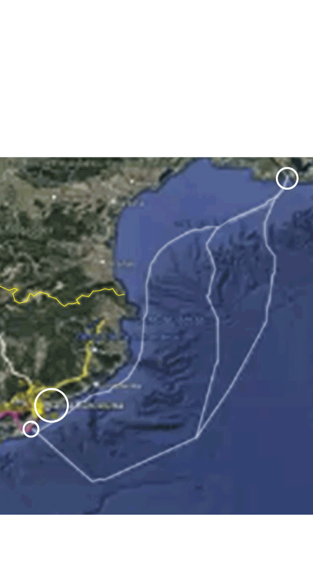 Posible trazado del hidroducto y de la interconexión eléctrica Barcelona-Marsella