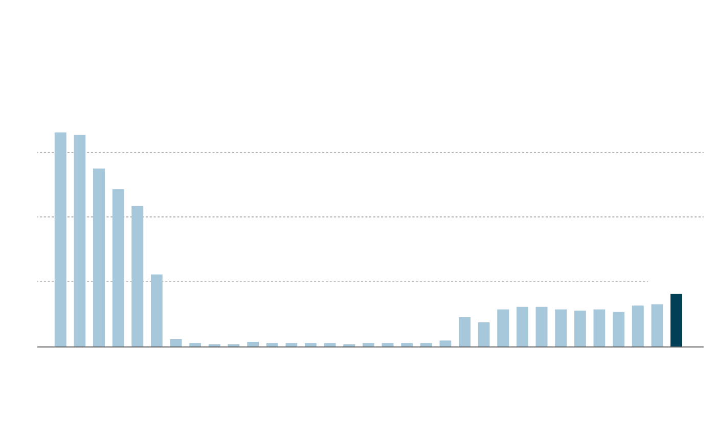 Desde 1998 hasta 2012 la participación del Estado en la Bolsa española se mantuvo prácticamente inmutable y en niveles muy residuales entre el 0,2 y el 0,5% del total. En 2013 llegó un repunte importante por el rescate a los bancos; principalmente, la subida de entonces se debió a la nacionalización de Bankia. Pero bajo el Gobierno de Pedro Sánchez se le ha dado un nuevo gran empujón. Por ejemplo, el Ejecutivo decidió ampliar sustancialmente la posición del Estado en Indra y en 2024 acometió un movimiento inesperado para regresar al capital de Telefónica.