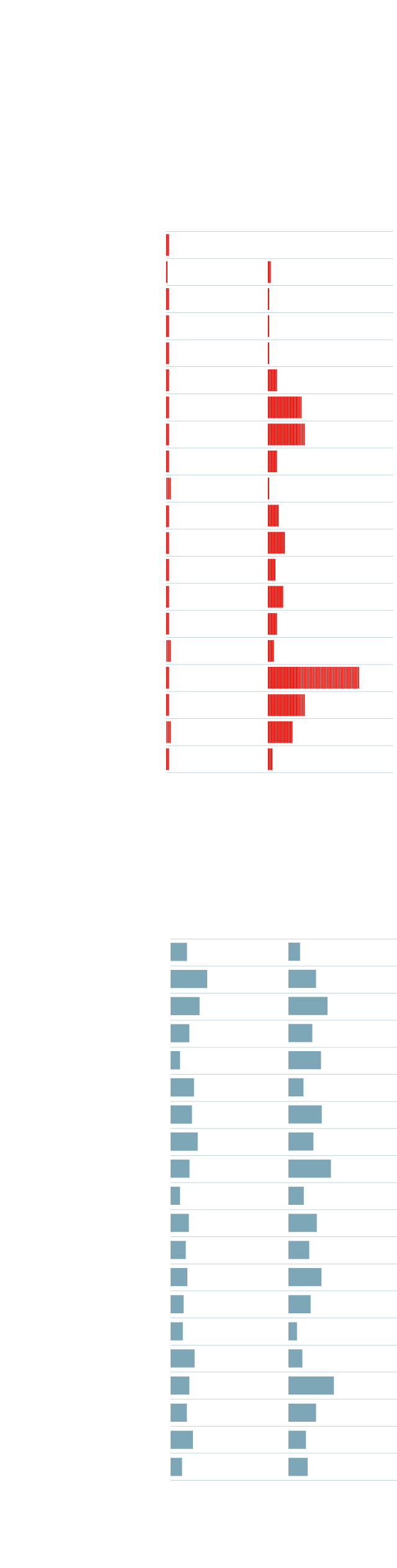 En esta tabla están los veinte primeros lugares del Índice de Valor de Internet (IVi) propuesto por la empresa de ciberseguridad Surfshark. Las dos primeras columnas recogen la cantidad de horas de trabajo remunerado necesarias para comprar un paquete promedio de banda ancha fija y en la segunda para comprar 1 GB de datos móviles. La tercera y cuarta columnas recogen los datos de la velocidad promedio tanto de la conexión fija como de la móvil.