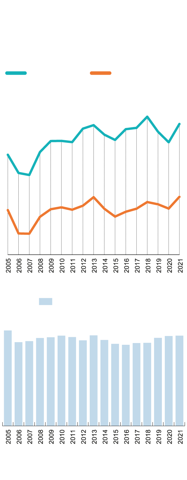Los últimos datos que ofrece la Seguridad Social, y que no son especialmente prolijos en cuanto a la distribución de las altas de jubilación en función de la edad, arrojan eso sí un cambio de tendencia notable en los últimos años. Por un lado, el volumen de jubilaciones de 65 años o más aumentaron un 11% entre 2017 y 2021, pasando de un total de 176.107 retiros a 195.724 en esta horquilla de edad al final del periodo de cinco años. Y además, la tasa de estos trabajadores que se retiran con 65 años o más suponían a cierre del pasado ejercicio el 61,9% del total. Esta tasa es, concretamente, 5,1 puntos porcentuales mayor que hace un lustro.