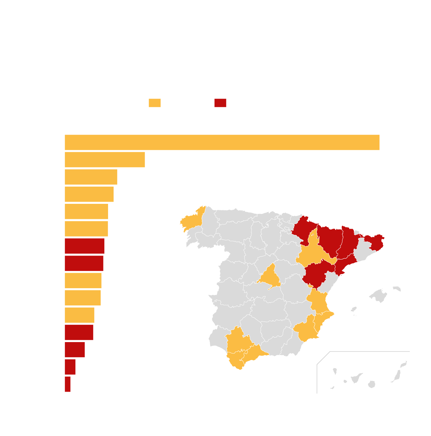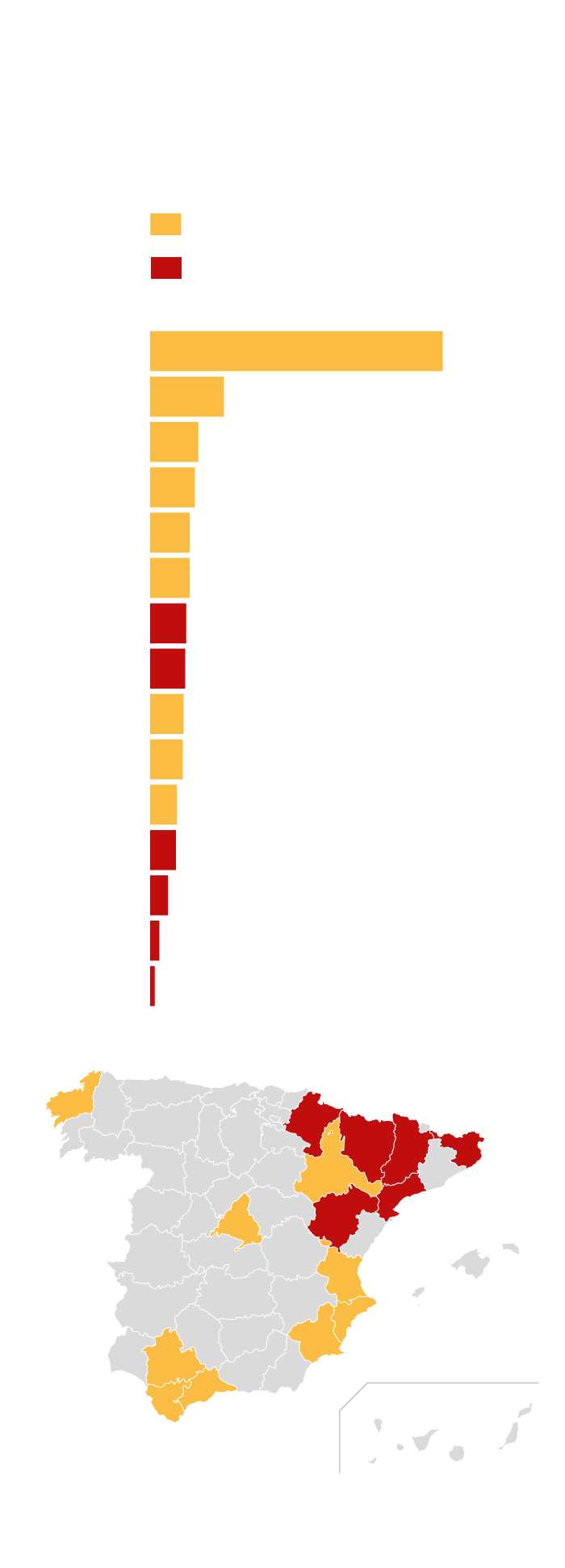 El dato, que forma parte de un estudio realizado por investigadores de la Universidad de Mannheim (Alemania) y el Banco Central Europeo tomando datos de toda la UE a nivel provincial, puede resultar sorprendente, dado que parecería que en lo alto de este ranking debieran estar Huelva, Lérida o Emilia-Romaña (Italia), regiones donde la agricultura tiene un peso mayor y por tanto son más vulnerables a la sequía. O por ejemplo, Orense, provincia en la que este verano se abrasaron casi 90.000 hectáreas.