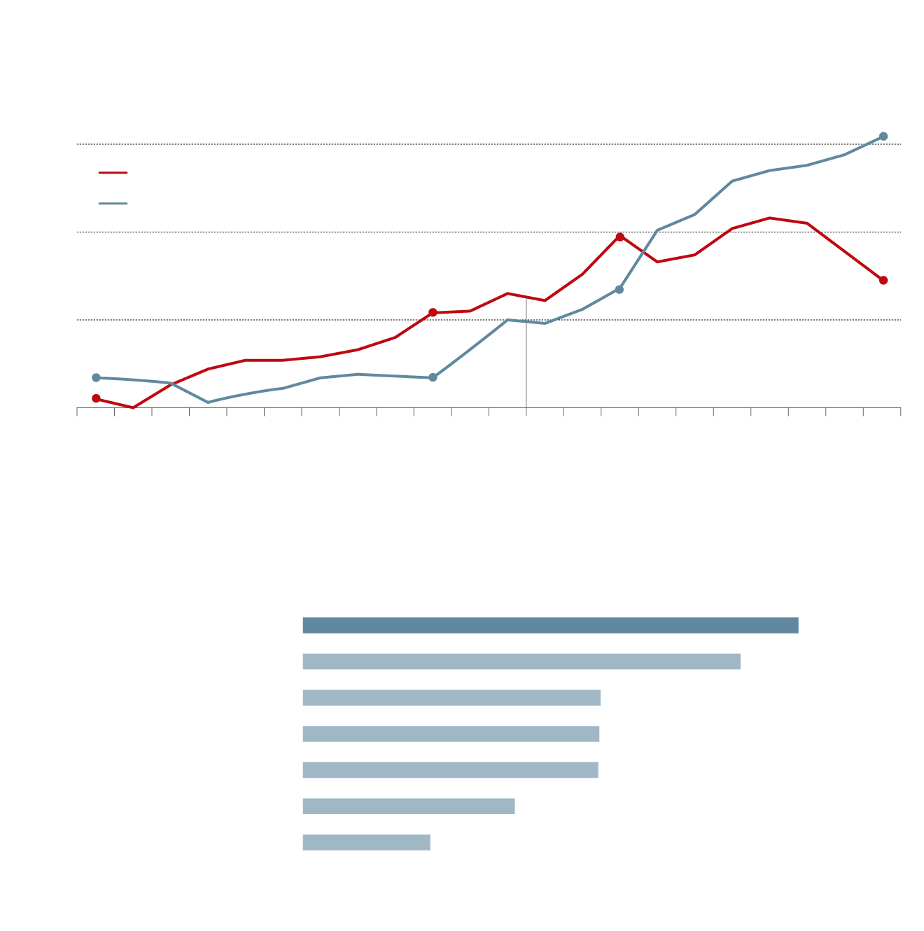 Sin embargo, la evolución del IPC continúa inquietando y ello es, principalmente, por el comportamiento de la cesta de la compra. En octubre el precio de los alimentos aumentó respecto al mes anterior por decimotercer mes consecutivo, un hecho sin precedentes en los últimos veinte años; acumula un encarecimiento del 13,7% desde que empezó el año, algo igualmente sin precedentes; y ha experimentado una subida del 15,8% en los últimos dos meses (15,4% si se tiene en cuenta la rúbrica oficial: alimentos y bebidas no alcohólicas), algo que jamás sucedió antes desde que se empezaron a registrar por separado los precios de los alimentos.