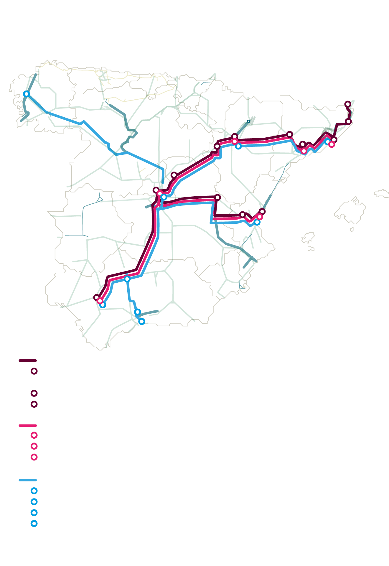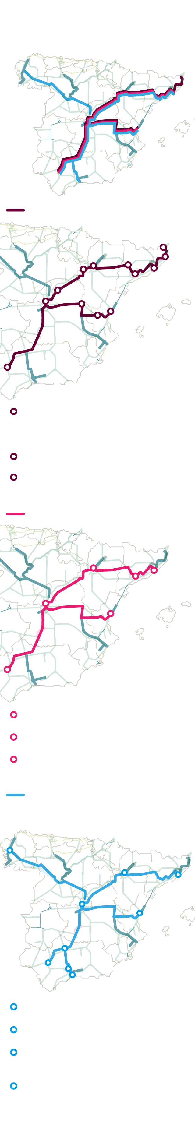 En el corredor de Madrid Barcelona (parando en Madrid, Guadalajara, Calatayud, Zaragoza, Lérida, Tarragona, Barcelona, Gerona y Figueras)