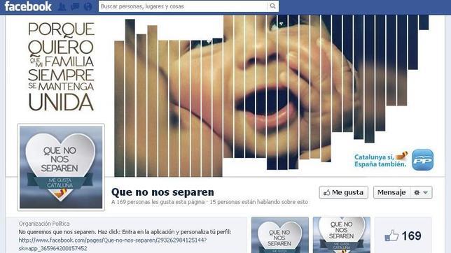 Bajo el título «Que no nos separen», los populares han puesto en marcha esta iniciativa que invita a los titulares de cuentas en Facebook a poner como fotos de perfil mensajes y fotos de afecto hacia Cataluña, ya sea porque tienen familia o amigos catalanes o simplemente porque «les gusta» esta comunidad.